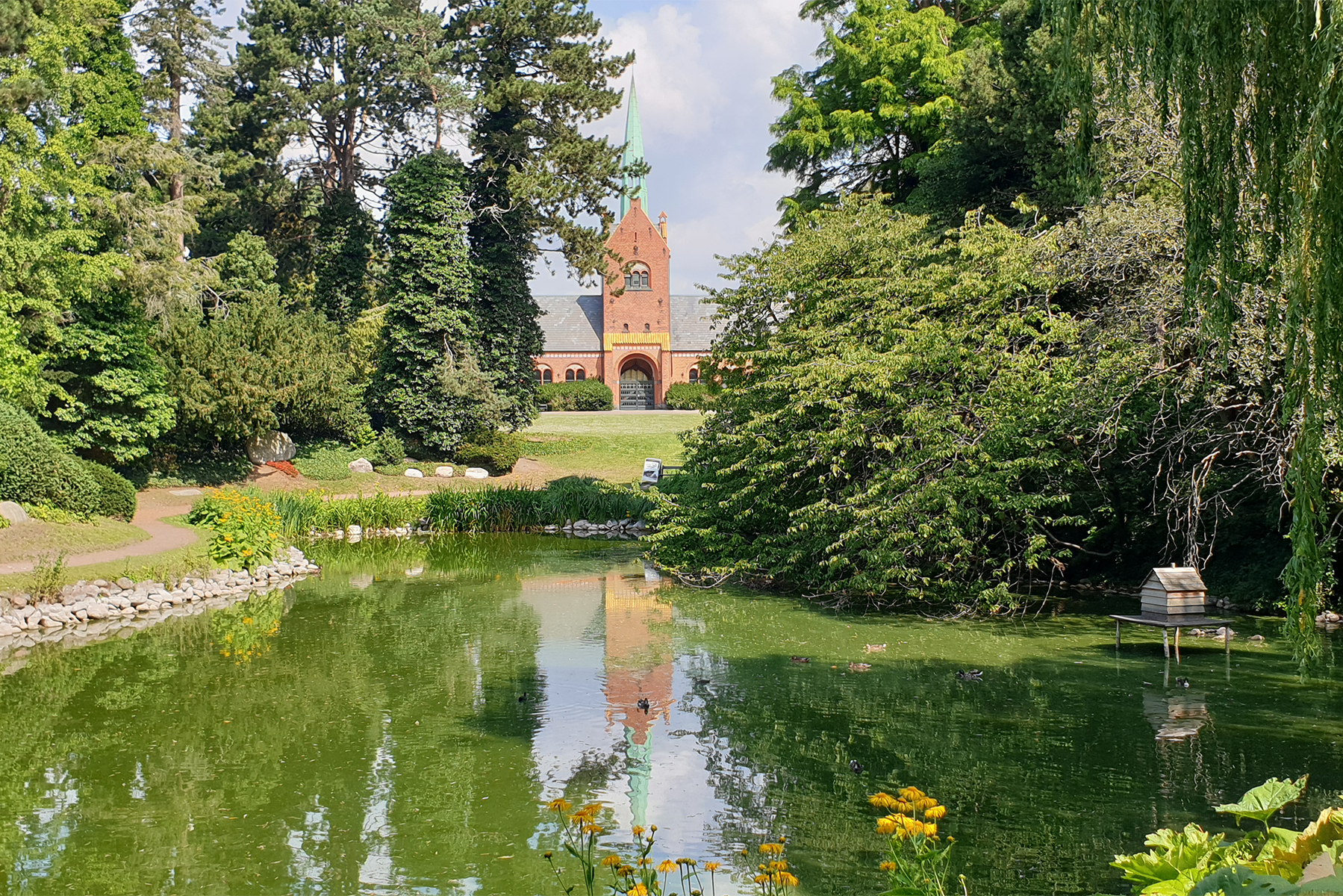 entfernt ist. Das Navi führt uns durch den Vestre Kirkegard, einem wirklich