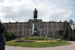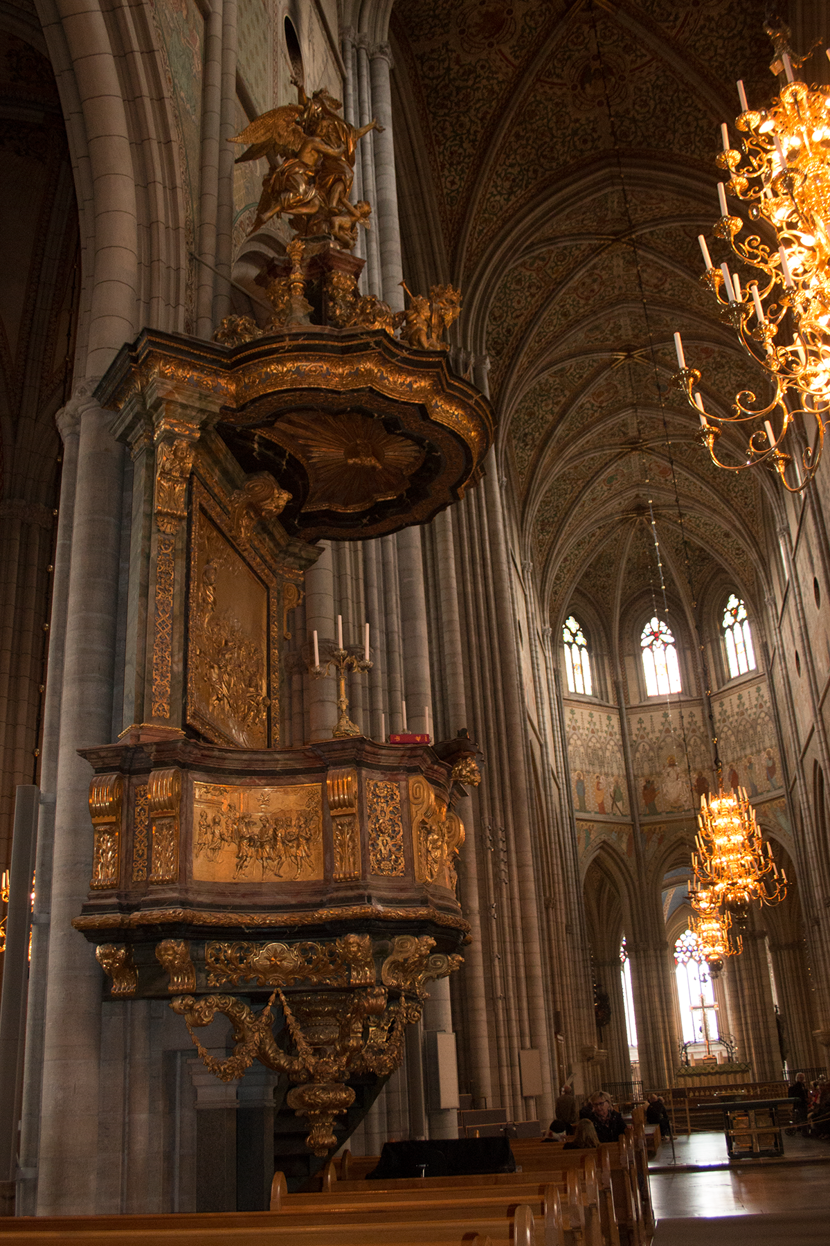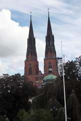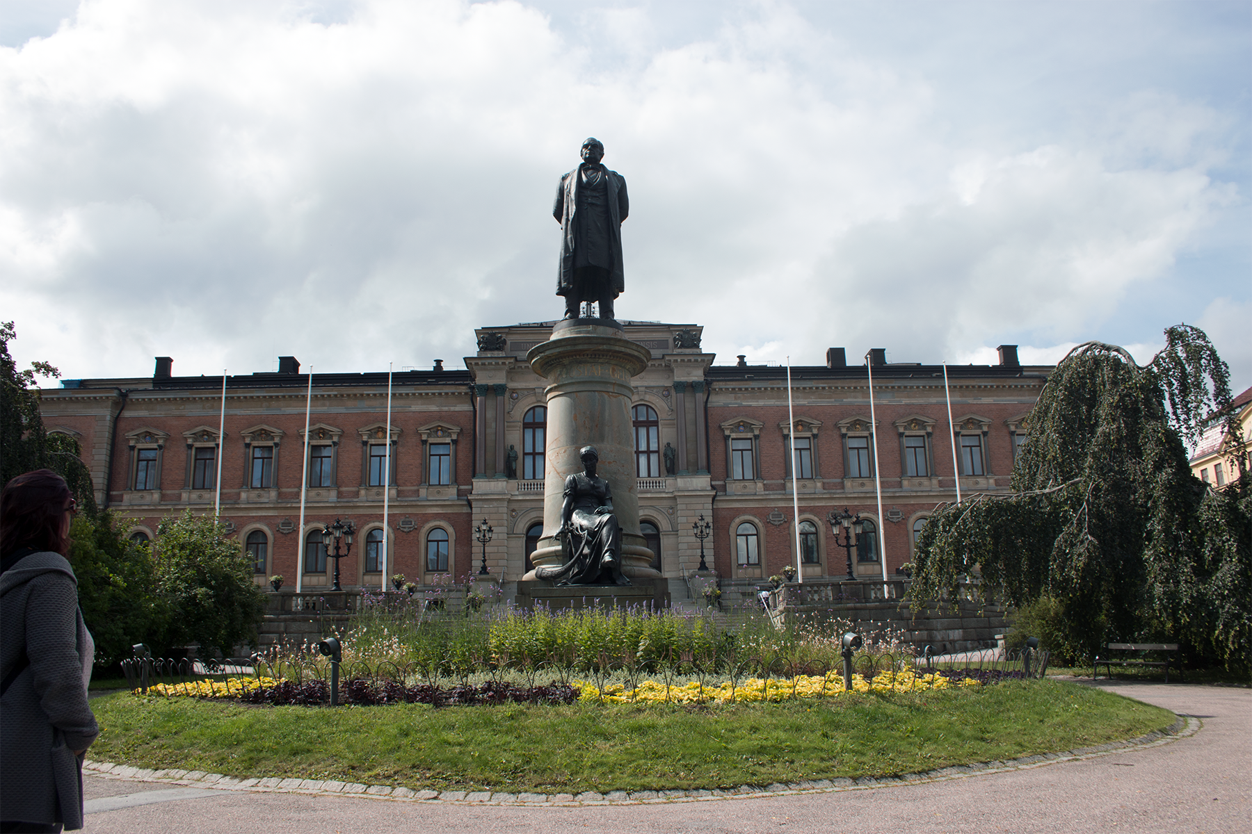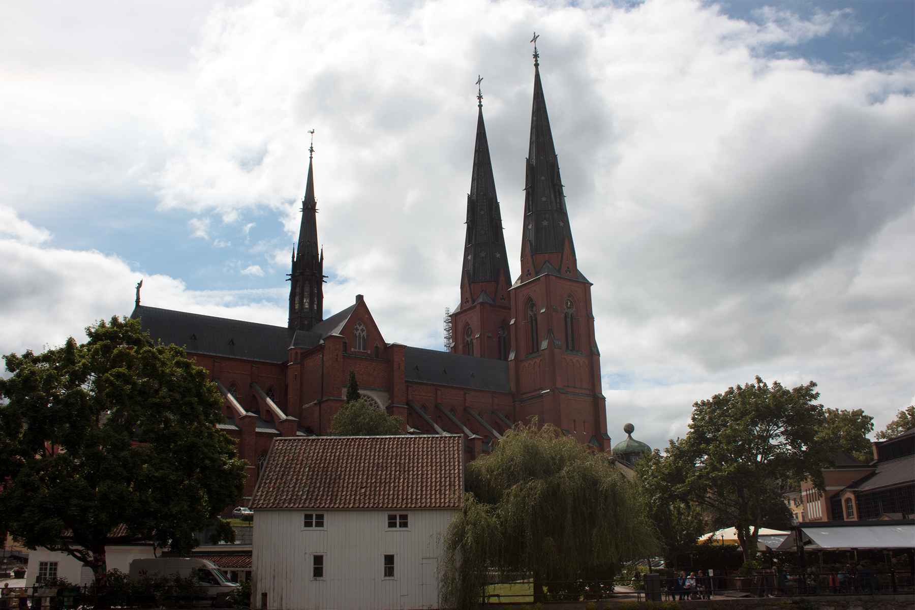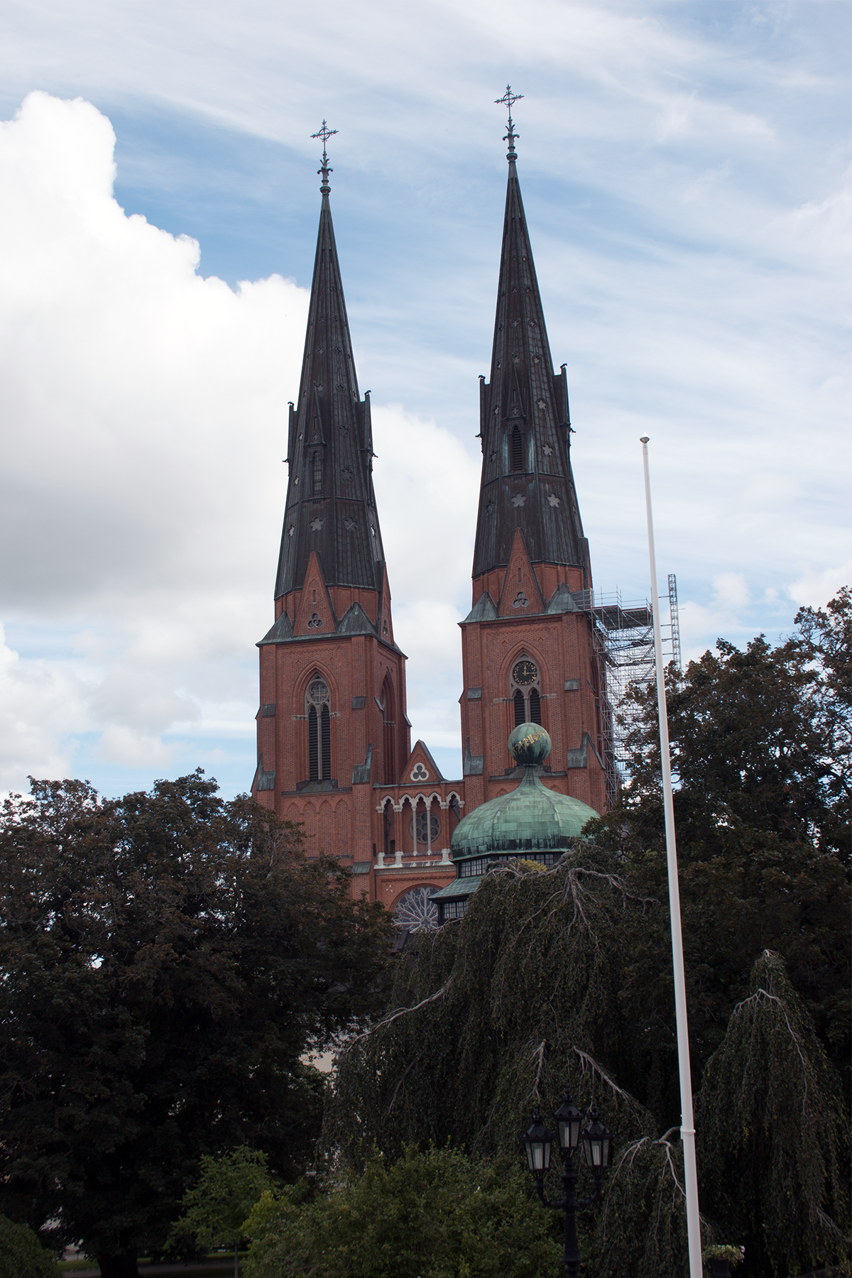 Unser heutiges Ziel ist der rund 500 km weit entfernte Skuleskogens Nationalpark. Hier wollen wir die nächsten beiden Nächte verbringen. Auf dem Weg liegt noch die Universitätsstadt Uppsala und gleichzeitig Sitz der Erzbischöfin, das müssen wir uns unbedingt anschauen. Also runter von der E4 und immer Richtung Centrum. Bald haben wir auch einen Parkplatz in der Nähe der Kirche und der Universität gefunden. Steven bleibt im Wohnmobil (der Fuß schmerzt wieder) und die drei anderen gehen Richtung Uni-Park. Wir spazieren durch ein kleines, aber feines Gelände mit jeder Menge Runensteinen, die Marcel alle fotografieren muss. Von da aus geht es in das Uni-Gebäude, welches Anfang des 19. Jahrhunderts erbaut wurde. Das Entree ist schon sehr imposant, das Audimax beeindruckt uns aber noch deutlich mehr. 1200 Studenten finden hier Platz und blicken auf eine große Bühne. Alte Kunst und neue Technik wurden hier wunderbar in Einklang gebracht. Schaut es euch einfach in der Fotogalerie an und ihr werdet mir sicher recht geben. Von da aus ist es nicht weit zum Dom von Uppsala. Auch den sollte man sich wirklich nicht entgehen lassen. Er erinnert mich sehr an den Kölner Dom, nur dass statt der Gebeine der heiligen drei Könige hier die vom heiligen Erik liegen, einem Märtyrer, der Schweden erobert und anschließend zum Christentum bekehrt hat. Nach gut einer Stunde geht es dann weiter gen Norden.