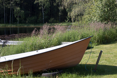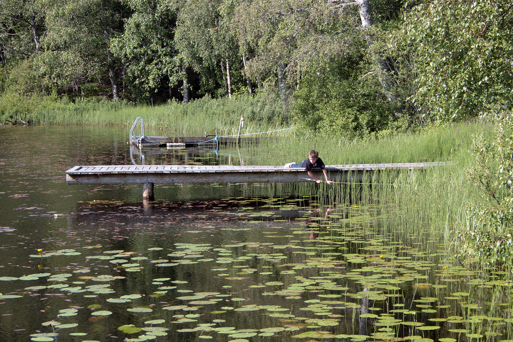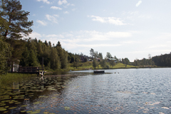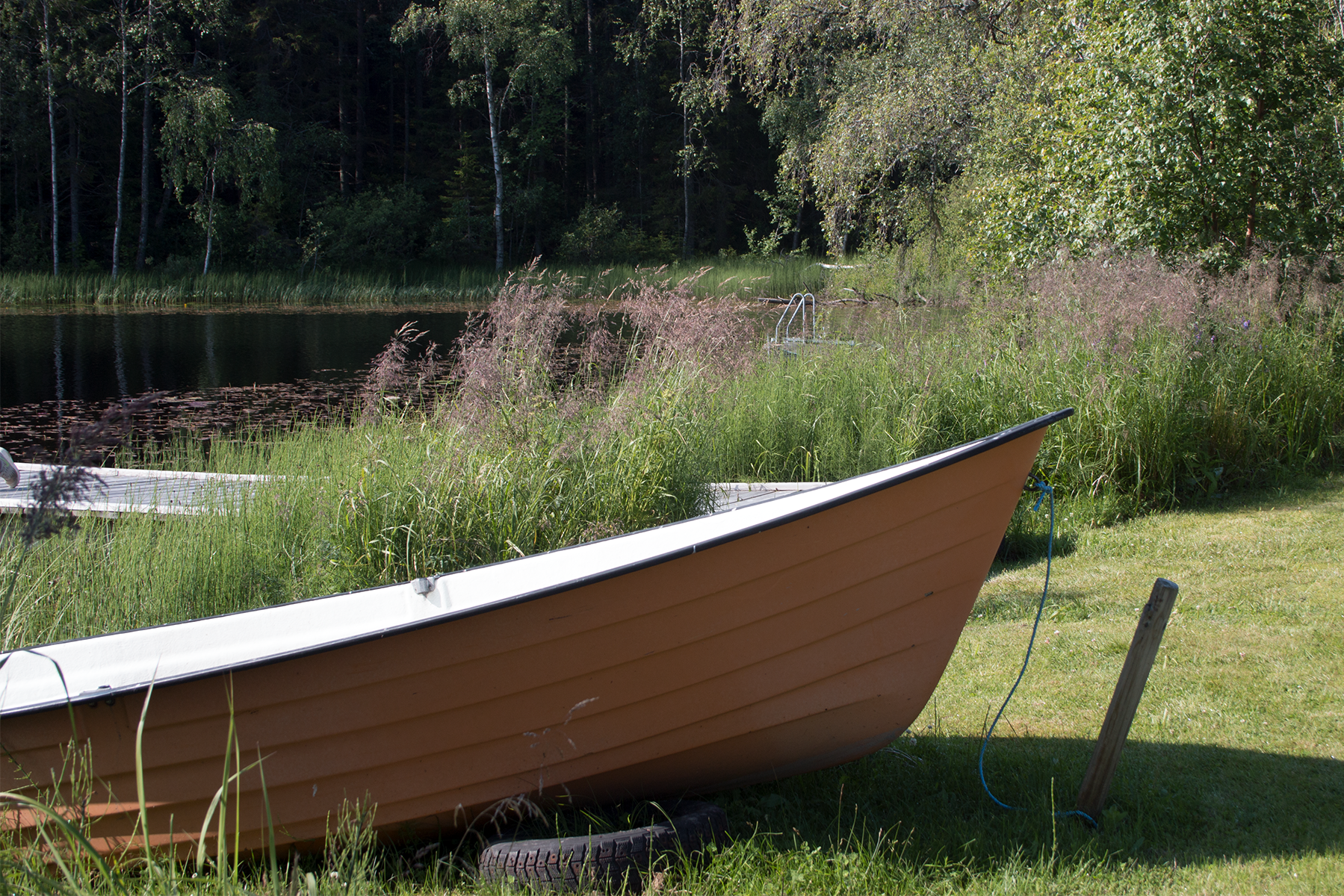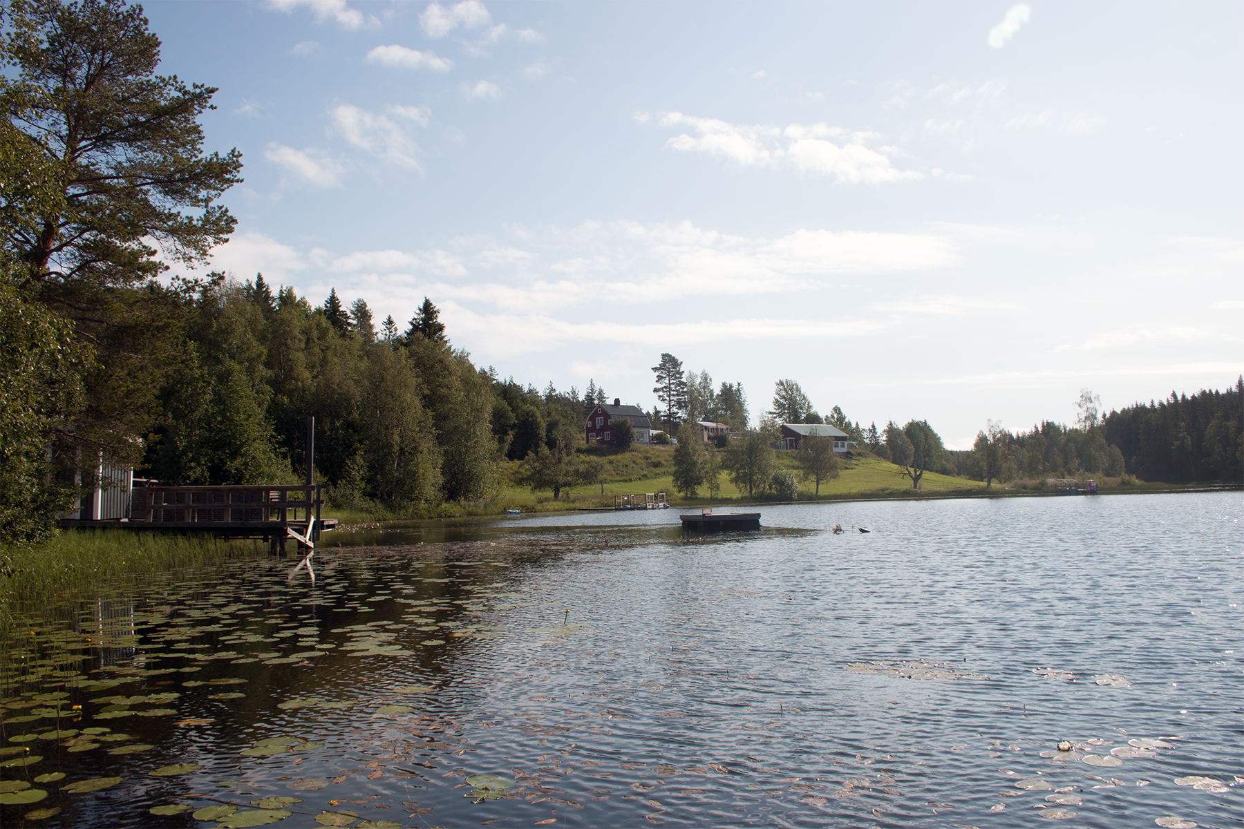 Bisher sind wir eigentlich immer nur die E4 hinaufgefahren. Nun wollen wir aber auch endlich mal etwas abseits durch die Dörfer fahren und wirklich Landschaft sehen. Einen ersten Abstecher machen wir von Gävle über Trödje, vorbei am Hamrängerfjärden, bis wir hinter Hamränge wieder auf die E4 stoßen. Das hat sich wirklich schon mal gelohnt. Die rot-weißen Holzhäuser, saftigen grünen Wiesen und immer wieder die kleinen Seen dazwischen bieten ein wirklich idyllisches Bild.